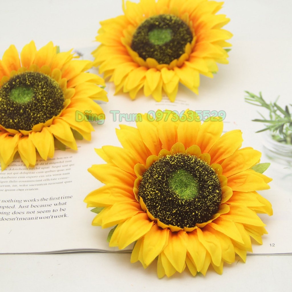 - Tên sản phẩm: Đầu bông Hoa hướng dương 5 lớp 13cm vải lụa trang trí cắm hoa cầm múa biểu diễn