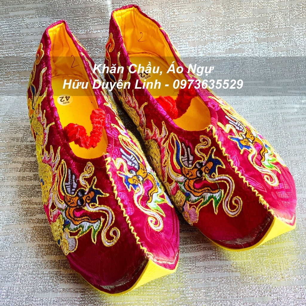 * Hài hầu giá Ông Hoàng Bảy vải gấm chỉ vàng, giày hầu đồng Quan Hoàng Bảy