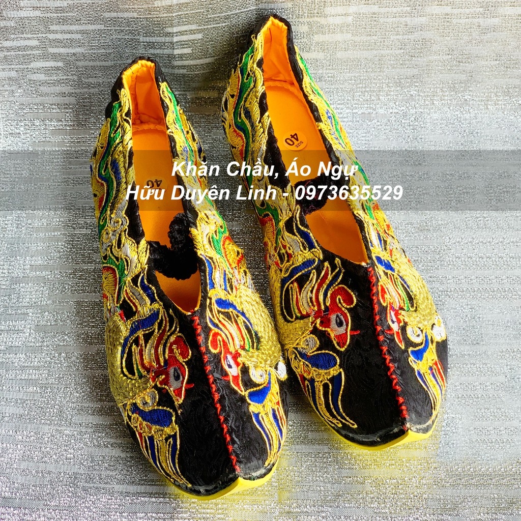 Hài Chầu Bé vải gấm chỉ vàng đẹp, giày hầu giá Chầu Bé Bắc Lệ trong Thập Nhị Vị Chầu Bà của đạo Mẫu Tứ Phủ