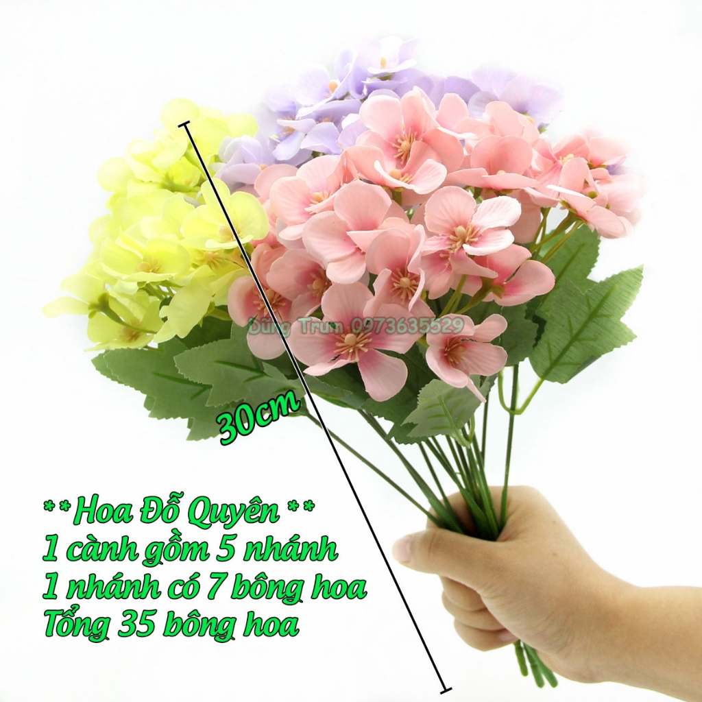 - Tên sản phẩm: Hoa lụa giả, hoa đỗ quyên 35 bông vải lụa lõi thép, chùm hoa vẫy khai giảng decor trang trí