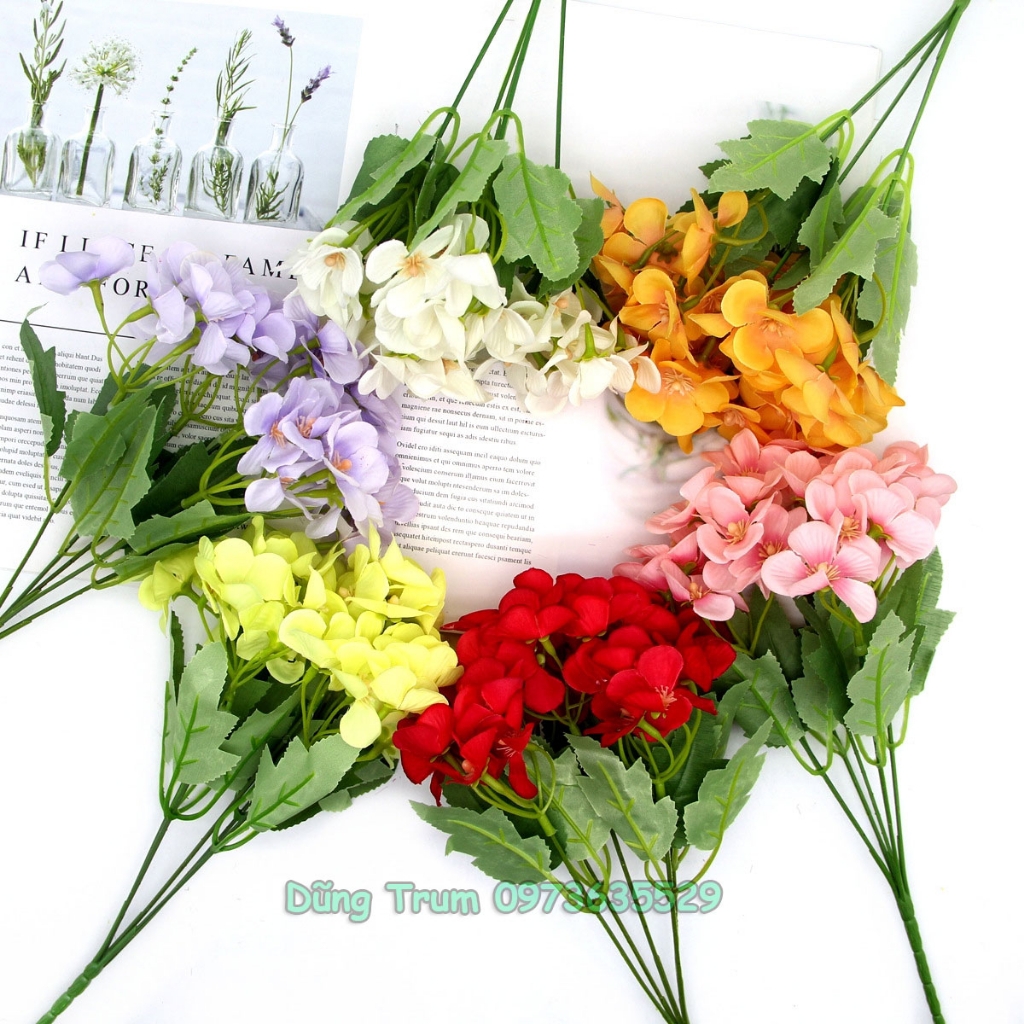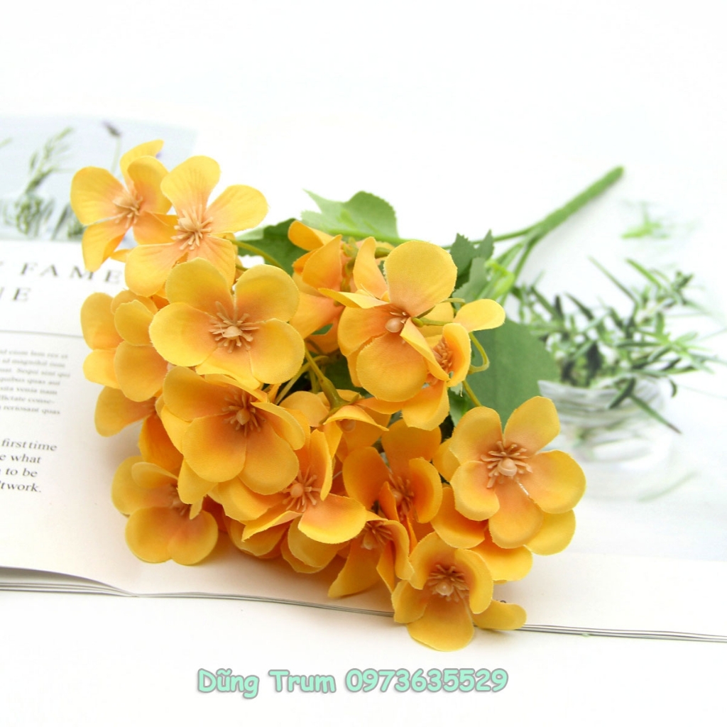 *Hoa lụa giả, hoa đỗ quyên 35 bông vải lụa lõi thép, chùm hoa vẫy khai giảng decor trang trí