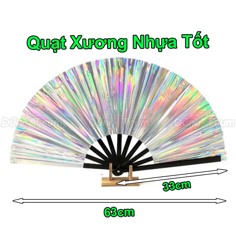 Quạt múa quạt võ kungfu vải phản quang xương tre cao cấp dày mịn