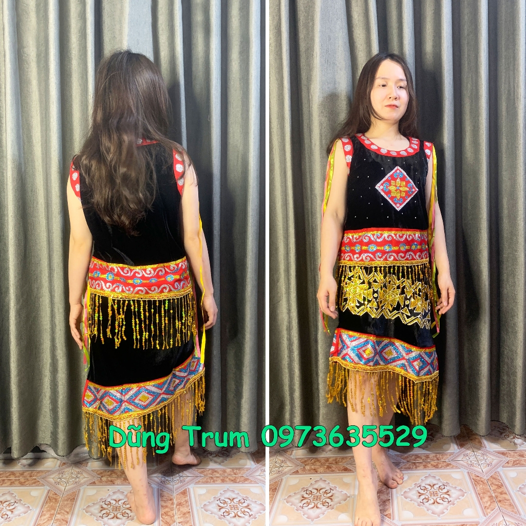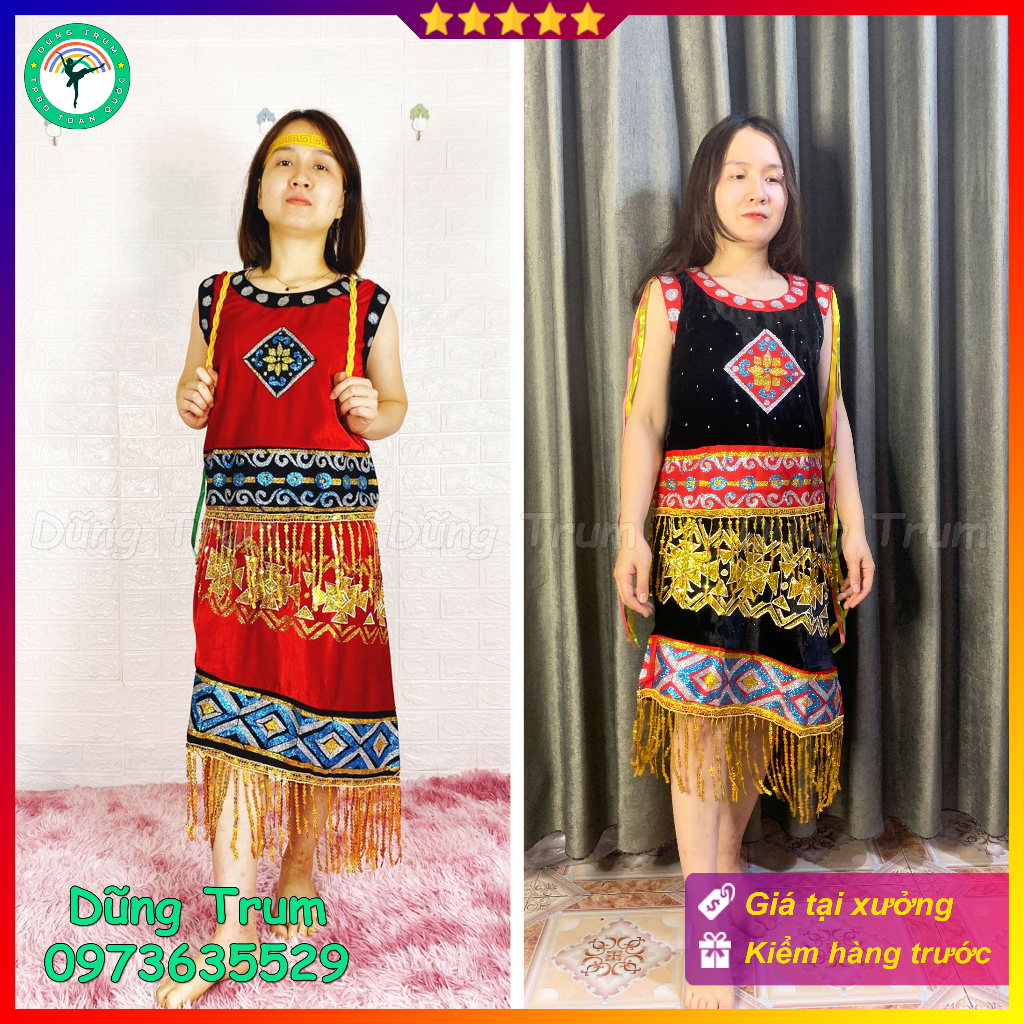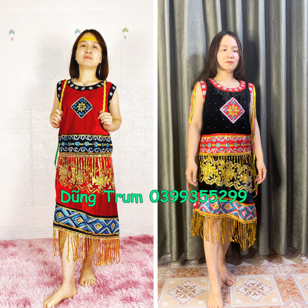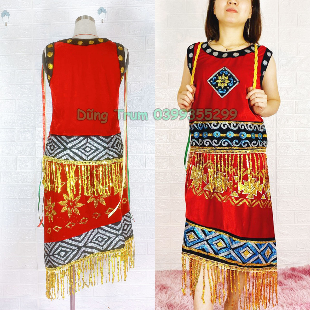 *Trang phục Tây Nguyên chất nhung dập kim tuyến hóa trang siêu đẹp